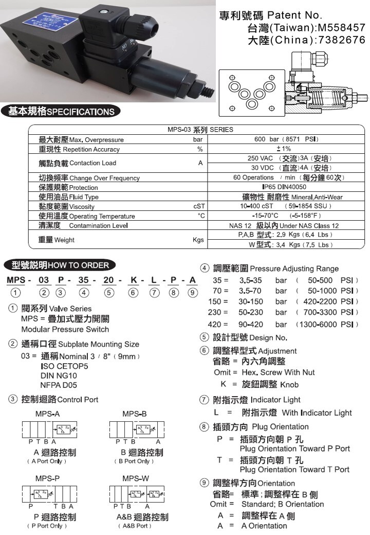 MPS-02 / MPS-03 Contaction Load: 250 VAC 3A / 30 VDC 4A